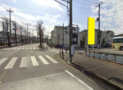 こちらの看板は遊水池前交差点から住宅街へ入った看板となり、住宅街にあるので地元の方々や公園へ遊びに行かれるご家族へ最適の広告となります。